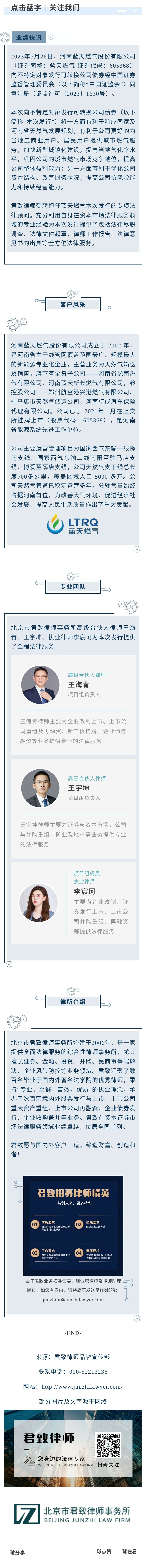 君致业绩|君致助力蓝天燃气向不特定对象发行可转换公司债券成功注册