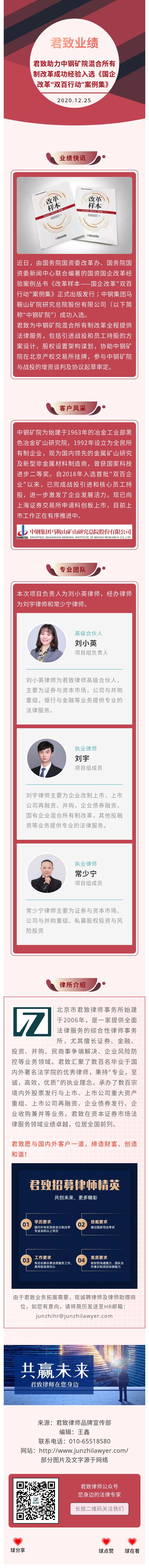 君致业绩|君致助力中钢矿院混合所有制改革成功经验入选《国企改革“双百行动”案例集》