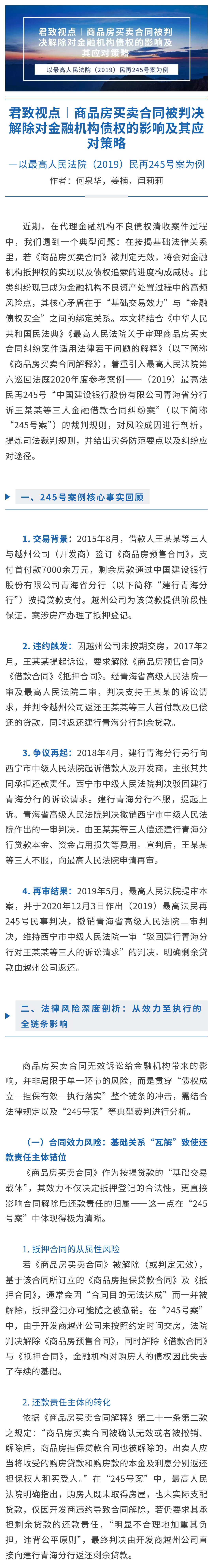 君致视点︱商品房买卖合同被判决解除对金融机构债权的影响及其应对策略