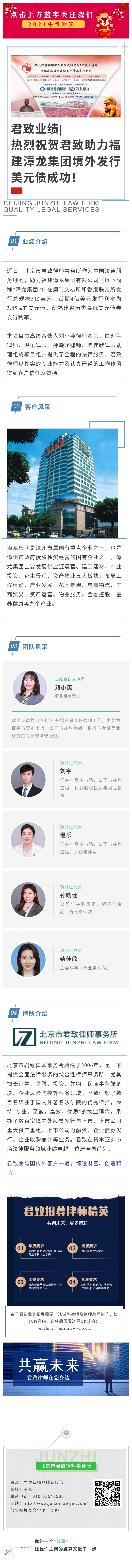 君致业绩|热烈祝贺君致助力福建漳龙集团境外发行美元债成功!