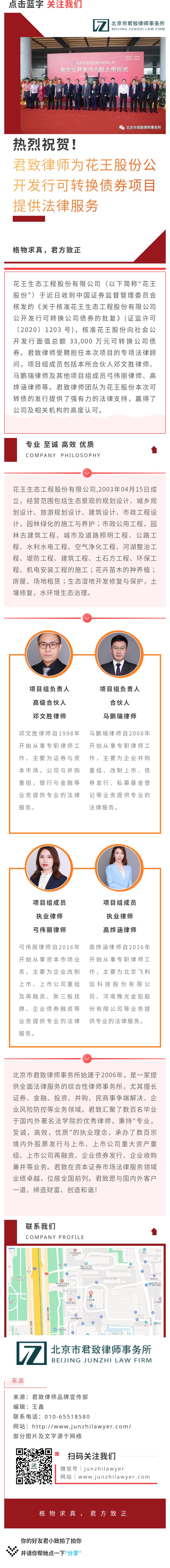 君致业绩|热烈祝贺君致律师为花王股份公开发行可转换债券项目提供法律服务